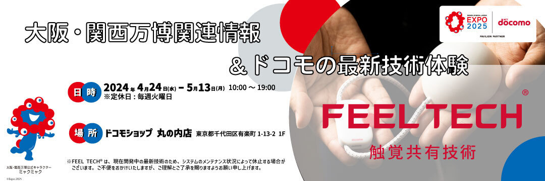 大阪・関西万博の開幕まで1年を切りましたが、ドコモショップ丸の内店では、これを記念して期間限定の体験企画を実施中。遠くへさわった感触を届けられる「FEEL TECH」(フィールテック)の技術が体験できます。