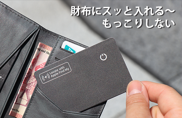 カードを無くした時はiPhoneに通知が届き、「探す」アプリで紛失物の場所を特定できる。また、近くにあるのに見つけられない時は、80dBの音量でカードを鳴らせる。
