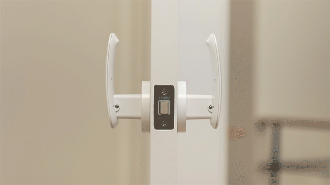 既存のドアレバーともDIYで交換可能。木製ドアにのみ使用でき、直径52〜54mmのノブ穴、60〜70mmのバックセット、厚さ35〜45mmのドアに取り付け可能。仕様が異なると施工できないので注意が必要。