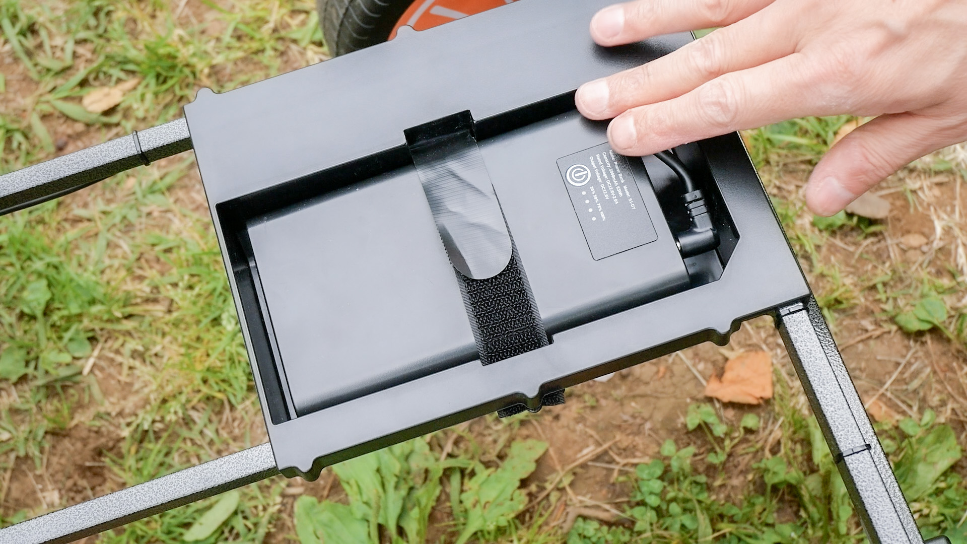 バッテリー容量は5000mAhで、フル充電で約3kmの走行が可能。もしバッテリーが切れてしまっても通常のキャリーワゴンとして使えます。