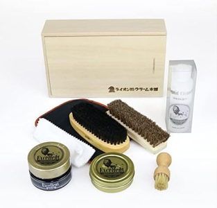 • 靴のメンテナンスに使えるグッズセットです。基本的なシューケアグッズだけでなく、より美しいツヤを出すアイテムも含まれています。桐箱入りで高級感があります。