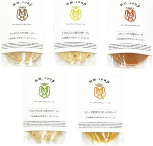 内容は、たっぷりキノコのポタージュ・エビとトマトの濃厚スープなど5種類。湯煎かレンジで温めたり、冷蔵庫で冷やしたりすると美味しく味わえます。