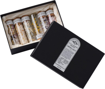 • 岩塩とハーブをミックスした、おしゃれなバスソルトです。オーガンジーの巾着袋が付属するので、ボトル1本分を移し替え、浴槽に入れて使います。