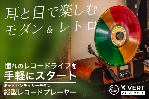 「Fuse Vert」はレコードを縦にセットする構造のプレーヤー。ミッドセンチュリーモダンのデザインで、インテリアとしても目を引くプロダクトだ。