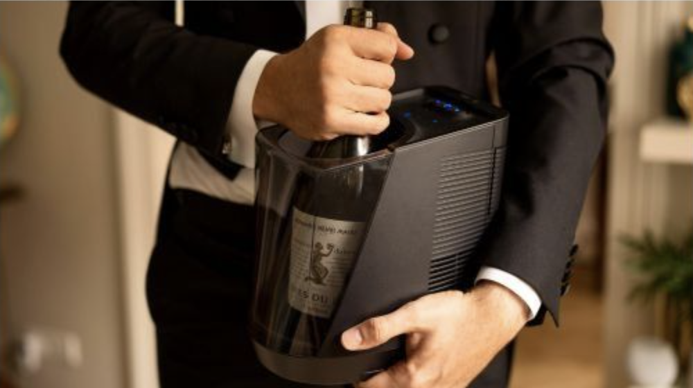 デカンタ専用のワインチラー「Titan ポータブル・デカンタ・チラー」も同時に販売しており、デカンタタイプは冷却プレートで8〜20℃で温度の調整ができる。こちらは執筆時点で104,550円(税込)から支援購入が可能。