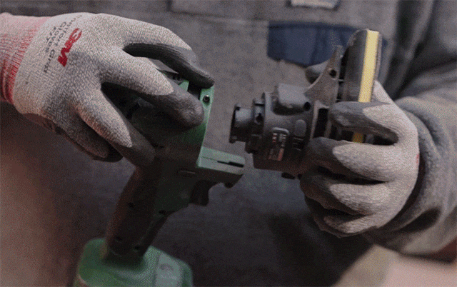 ドリル本体・バッテリー・工具パーツの3パーツで構成されており、工具パーツの交換でさまざまな電動工具に切り替えできる。本体ドリルの取り付けレールに、工具パーツを差し込んでロックして装着する。