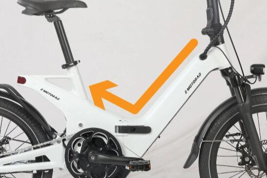 「EMOTORAD F046」のフレームは、V字型。足を高く上げなくても乗り降りしやすい設計になっており、スカートを履いていても乗りやすいという。