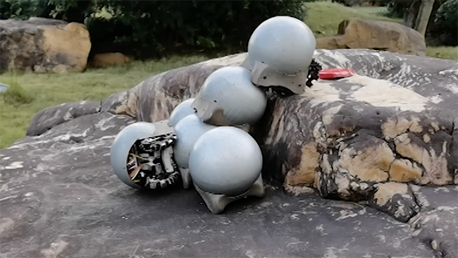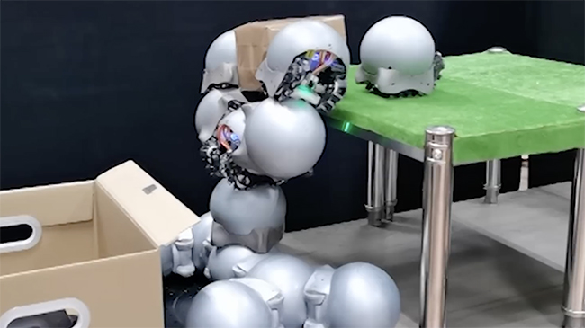 発表動画では、段差を登り下りする・崖と崖の間を渡る・一体化して転がり移動効率を上げる等の動きが確認できる。