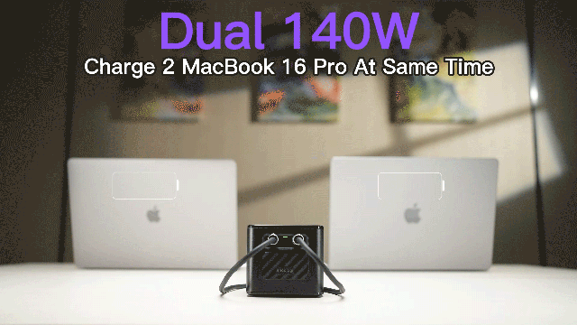 2個の140W USB-Cポートによって、16インチのMac Book Proを2台同時に急速充電することも可能だ。