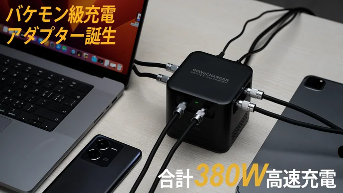 「GW380」は合計出力380Wの充電アダプター。USB-Cポート6個とUSB-Aポート2個を搭載し、8デバイスまで同時に充電できる。