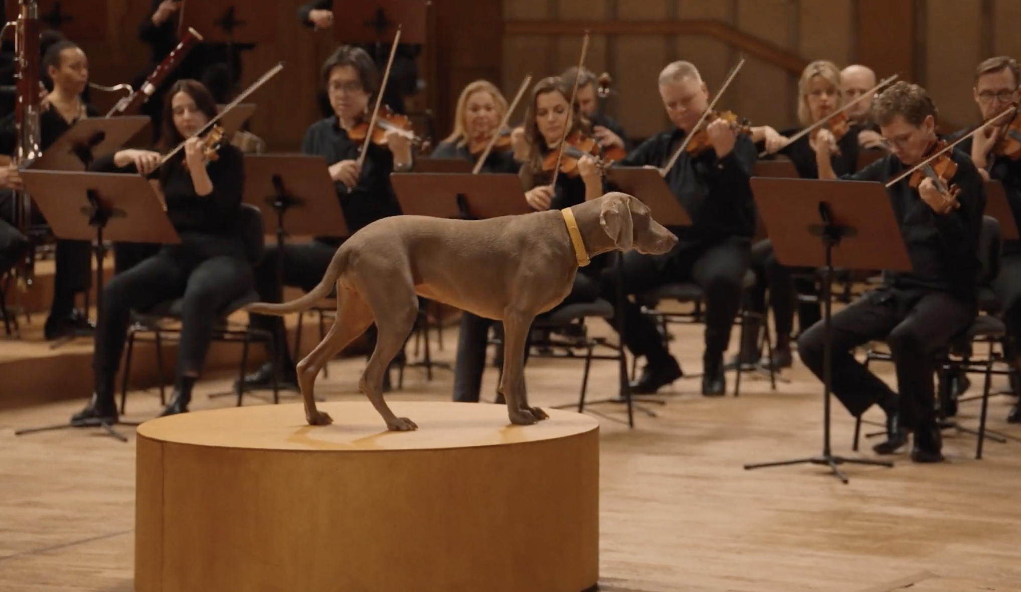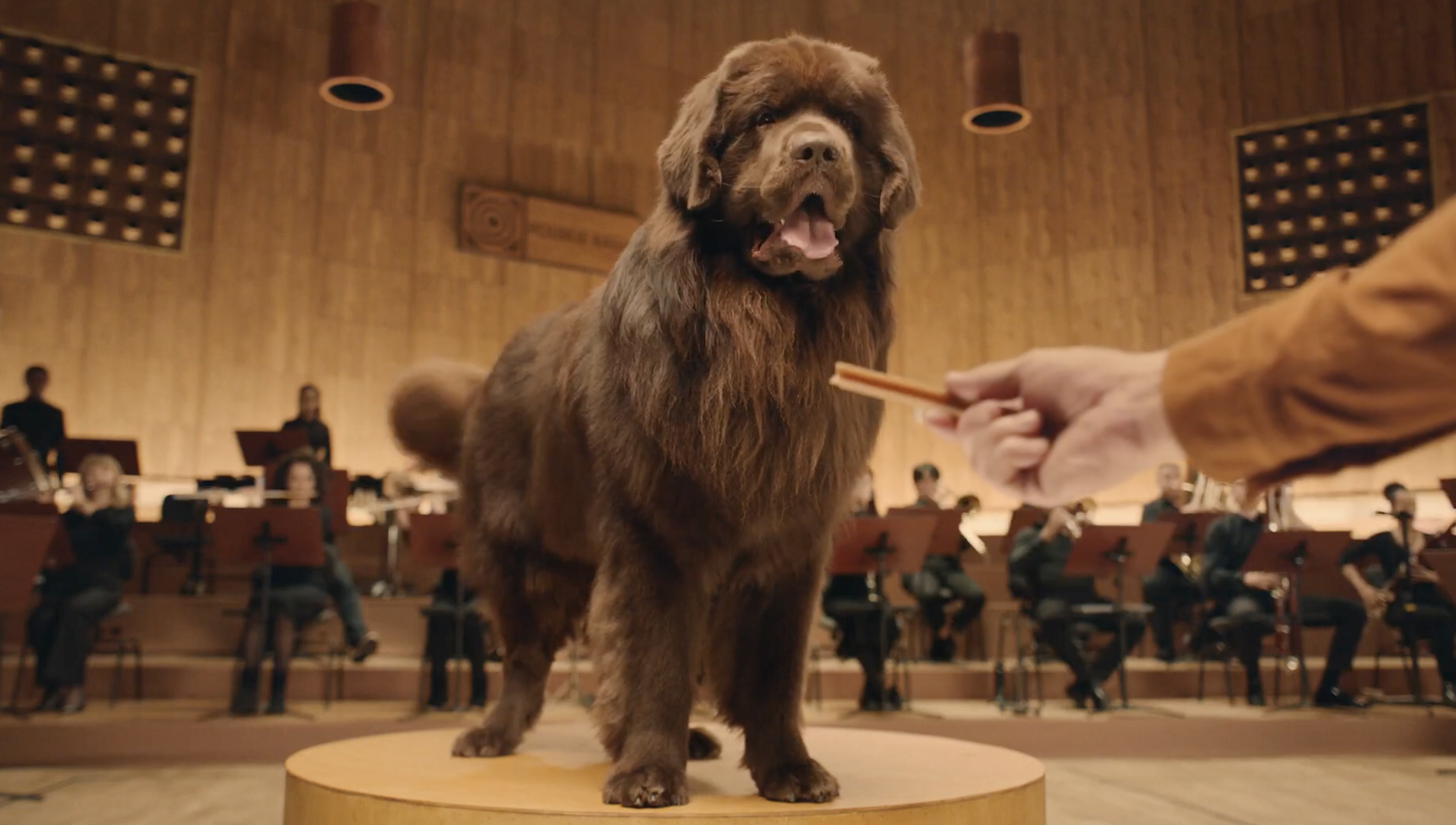 それらに反応して犬が尻尾をフリフリすると、その動きに合わせてオーケストラが演奏。犬が大きく尻尾を振ると、演奏者は壮大な音楽を奏で、尻尾が下がると、穏やかな演奏をするユニークな演奏だ。