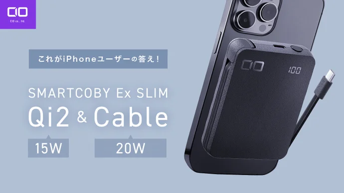 「SMARTCOBY Ex SLIM Qi2&Cable」はマグネットで吸着する、CIOのモバイルバッテリー。MagSafe対応のiPhoneなどに装着できる。Qi2規格のワイヤレス充電に対応しているうえ、充電ケーブルも内蔵している。