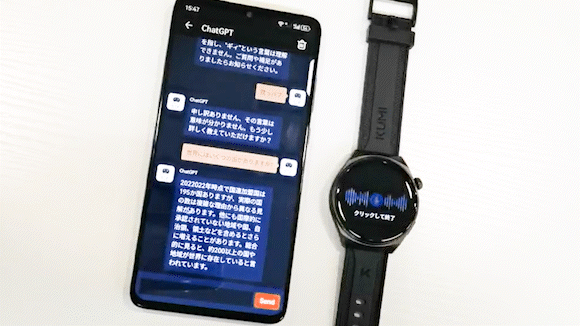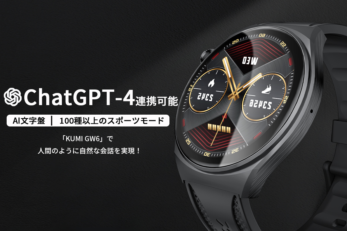 「KUMI GW6」はChatGPT-4に対応したスマートウォッチ。音声認識や運動管理、健康チェック機能も搭載している。