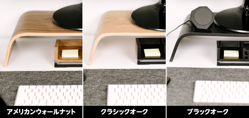 各製品はウッドタイプを選択でき、好みの材質・色合いで選べる。選択可能項目は下記の通り。
