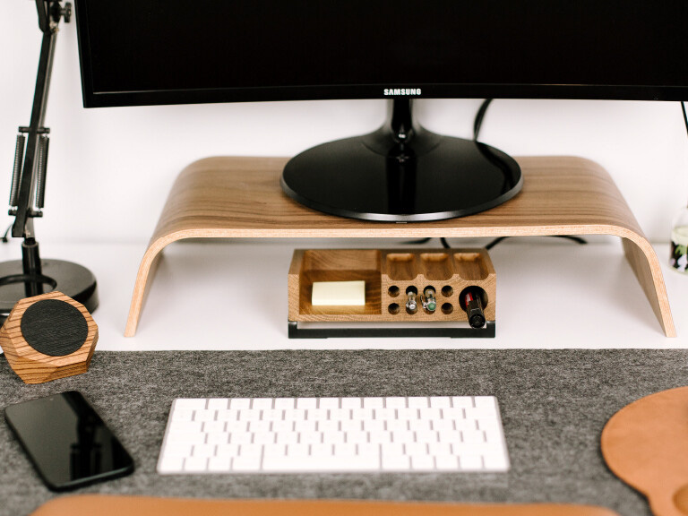 天然の木材を使用し、木の質感を活かしたデザインでデスクワークに自然を溶け込ませる。
