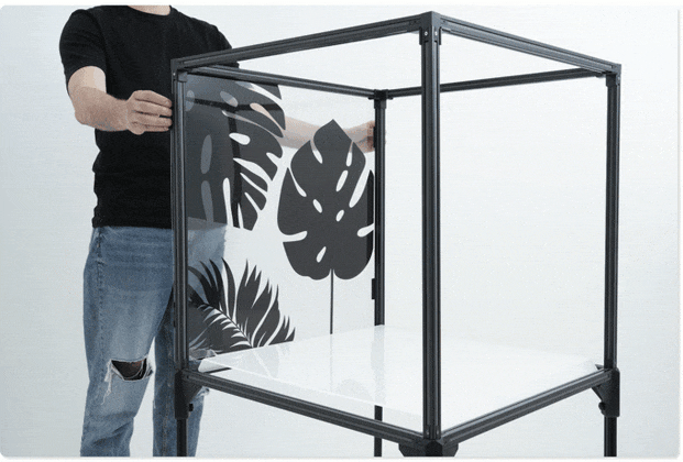 基本の組み立てサイズは64x64x73cm、重さは8.3kg。脚部分にフレームパーツを追加すれば、高さ129cmまでかさ上げ可能。下からの撮影やライティングなどにも対応する。