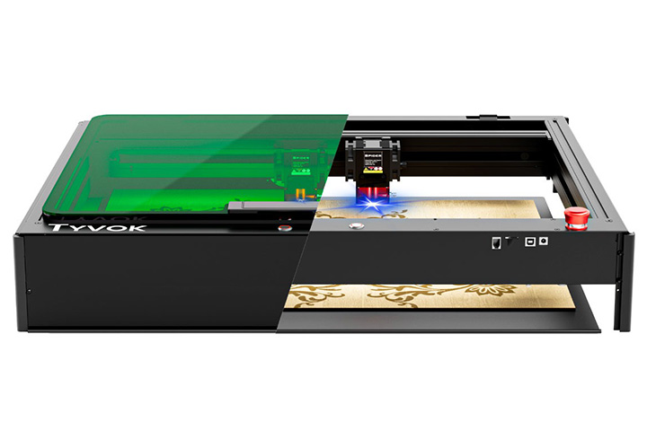 レーザーの出力は10Wと20Wの2種類。金属やガラス、セラミックなどさまざまな素材へ彫刻できる。20W仕様では厚み10mm程の板(木材、革、コルク、プラスチック、アクリルなど)ならカットも可能。