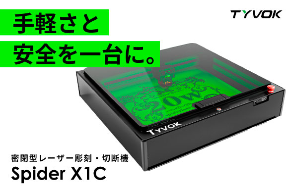 「Spider X1C」は据え置き型のレーザー彫刻機。出力は10Wと20Wの2種類から選べる。作業スペースを密閉できるクローズモデルと、密閉しないオープンモデルがラインナップされている。