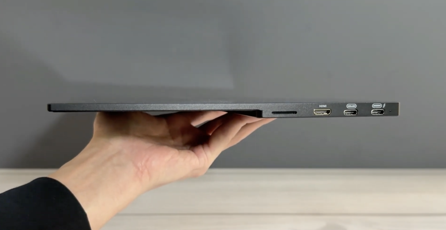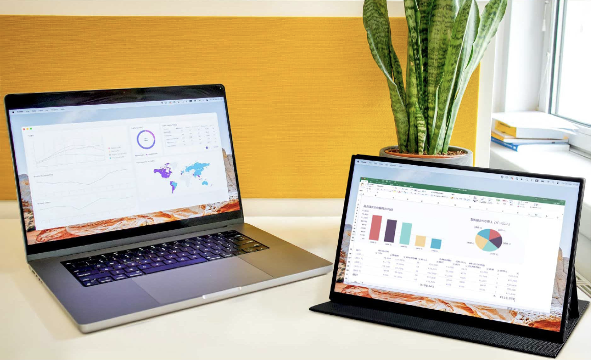 本体には3,000mAhバッテリー内蔵で、連続使用時間は約3時間50分。また、本体の最薄部は4mmで重量は885gなので、出先でもマルチモニター環境を構築できる。