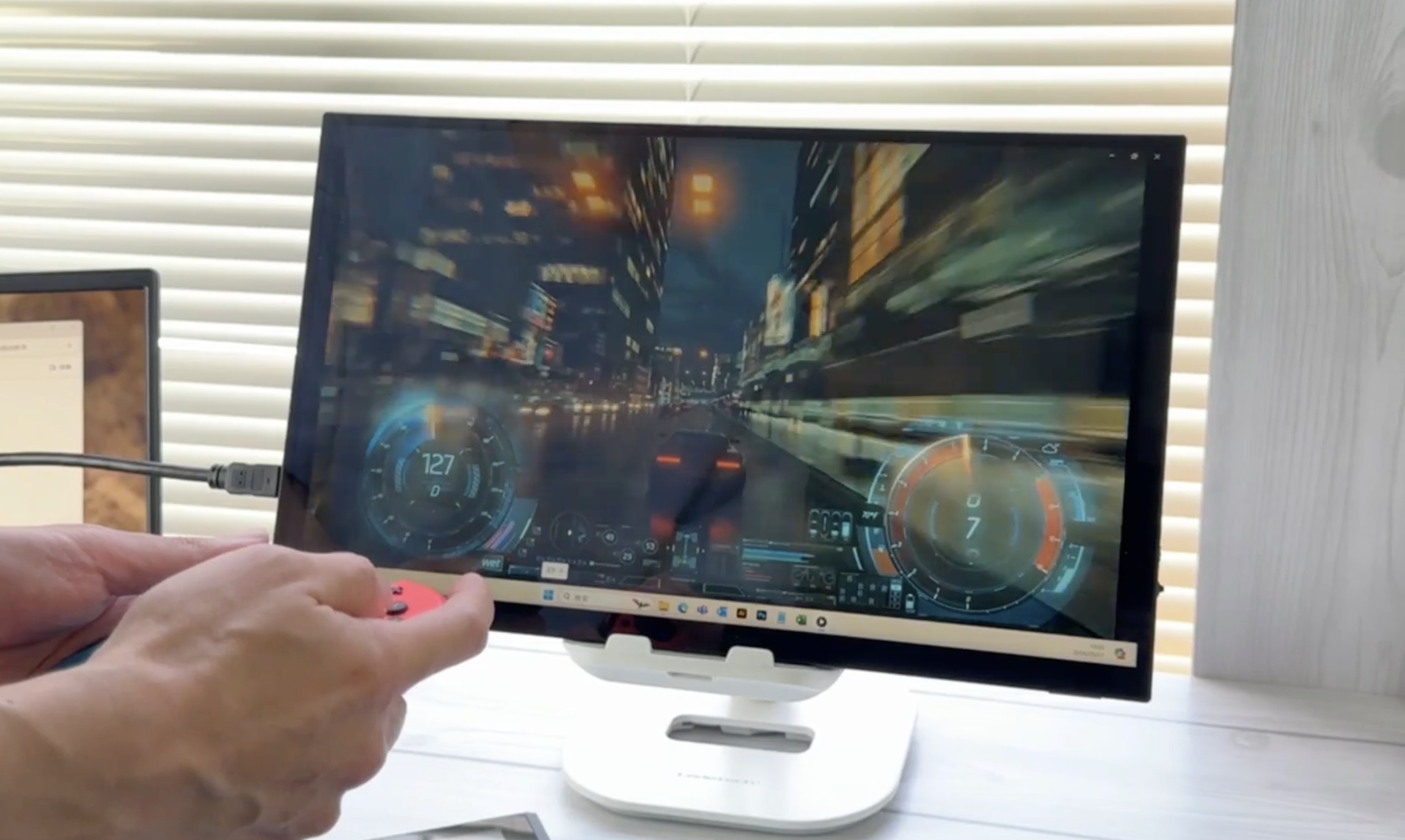 USB Typ-eCやMini HDMIのケーブルで接続すれば、Nintendo Switchなどのゲーム用モニターにもなる。この場合、外部電源が必要とのこと。