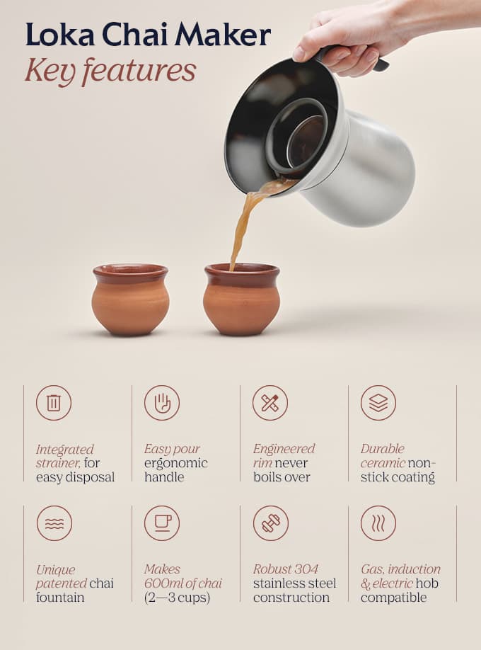 「Loka Chai Maker」は、自宅で手軽に本格的なマサラチャイを作れる器具。