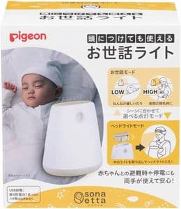 災害時のヘッドライトとしても使用できる、ユニークな授乳ライト。育児用品メーカーとして有名なピジョンの商品です。