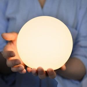 マット系シリコン製のやさしい手触りで、満月のようなフォルムとやわらかな明かりが魅力です。授乳中の手元を照らすうえ、インテリア雑貨と並べたり床や階段の足元に設置したりするとおしゃれな間接照明として使えます。