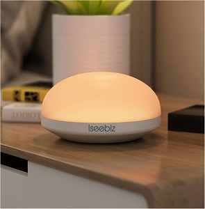 手のひらサイズで、かわいい、コロンとしたフォルムのライト。平べったい形で、ベッドの下などにも設置しやすい作りです。タッチセンサーでON/OFFの切り替えができ、調整した明るさは記憶されるため、次に点灯するときは消灯前の明るさになります。