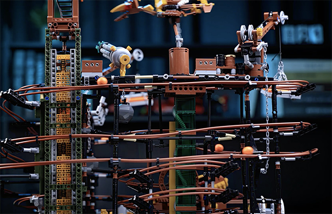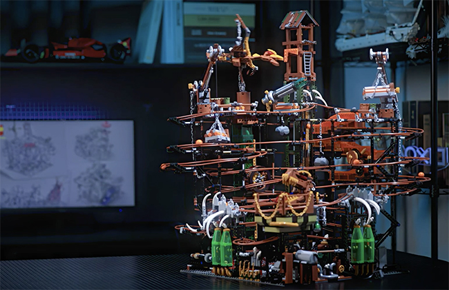 「Steampunk Marble Run」は、高さ63cm、約5,400ピースの本格ビルディングブロックセット。産業革命時代の蒸気機関工場に、ファンタジックな恐竜の要素を掛け合わせたユニークなプロダクトだ。