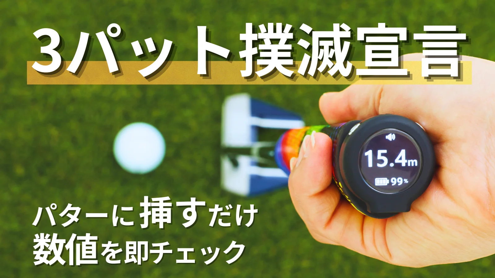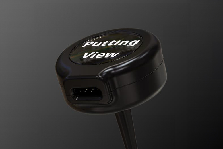 「パッティングビュー」は、本体下部にピンがある構造。パターのグリップエンドに空いている穴にピンを差しこめば装着完了。装着したままパッティング動作をおこなうと、内蔵されたセンサーが動きを測定。パッティングの予想距離を表示する。