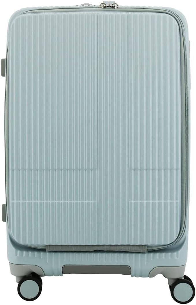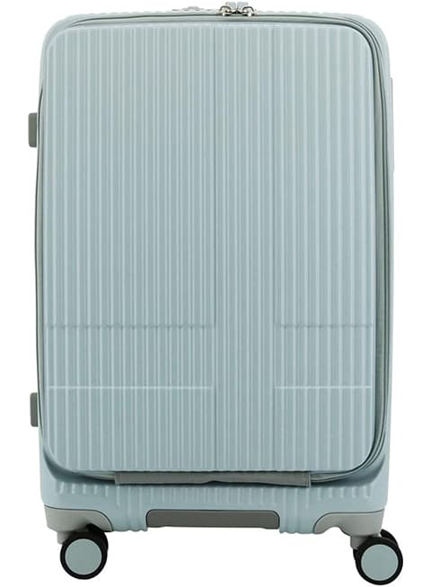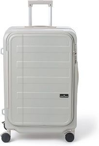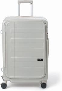 扉側にはファスナー収納のほか、メイク道具などの小物を出し入れしやすいファスナーのないポケットもついています。大容量かつ場所を取らないフロントオープンで、長期旅行にも十分な収納力。計算し尽くされた設計で、奥行きを持たせることにより、見た目は中型サイズと見紛うほどコンパクトです。