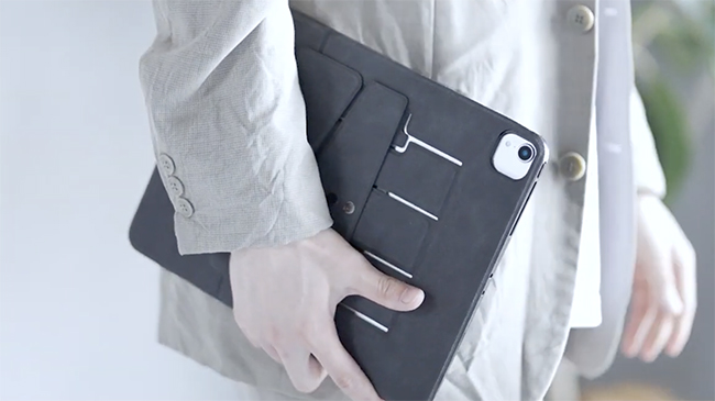 「okamiPad.lite」はiPadケースとiPadスタンドが磁石でドッキングしたプロダクト。他にも、iPadを快適に使用するための様々な機能を搭載している。