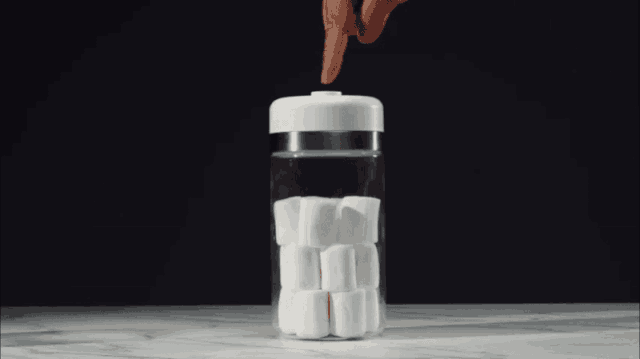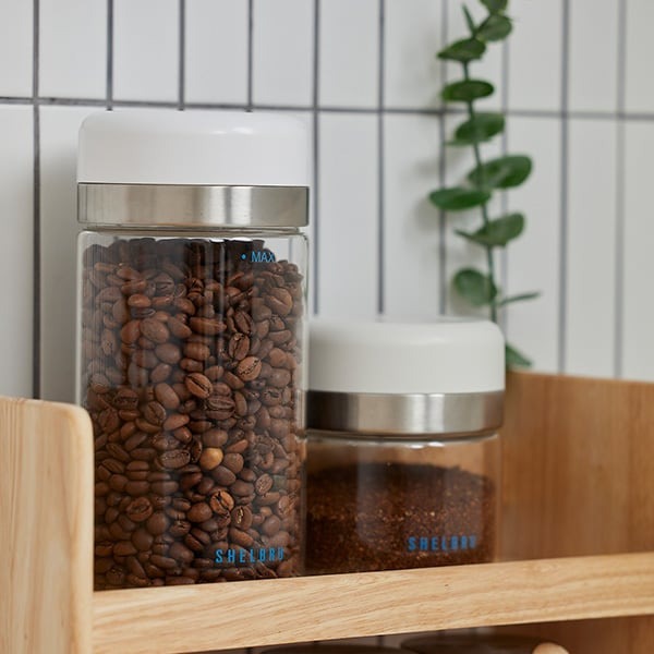 「スマートキャニスター」は、コーヒー豆などを保存するガラス製の容器。フタには真空ポンプがついており、ボタンを押すと約15秒で容器内が真空になる。真空状態にすることで、内容物の酸化を抑えられるという。