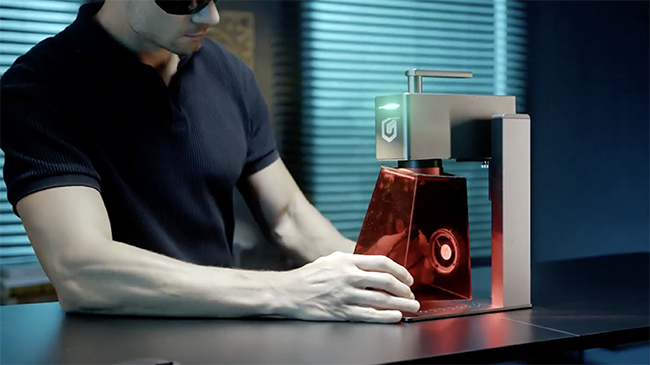 「Longer Nano」は精度0.02mm、彫刻範囲10 × 10cmで、金属・セラミック・木材・皮革など様々な素材に対応。本体を手で持ち素材に押し付けた状態で彫刻することも可能だ。