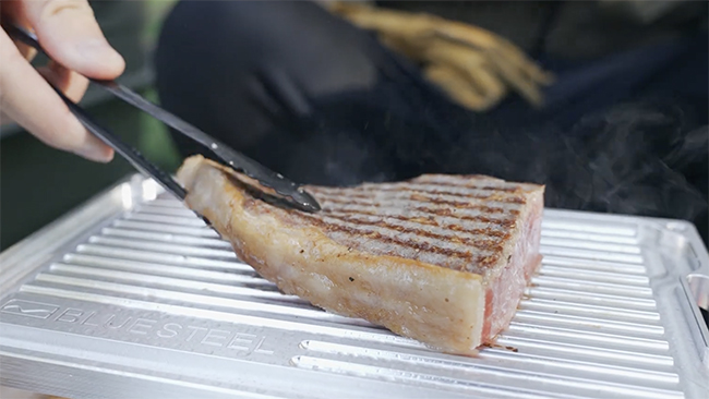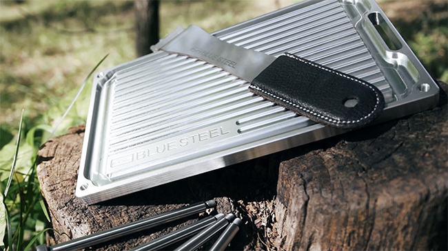 「250 SOLID PLATE ALUMINUM」は、無垢のアルミニウム素材を削り出して作られた調理プレート。鉄より軽く熱伝導率が高いのが特徴だ。