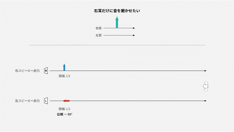 音をコントロールするため、逆位相の波を活用し左右それぞれの耳に届けたい音を直接届ける。