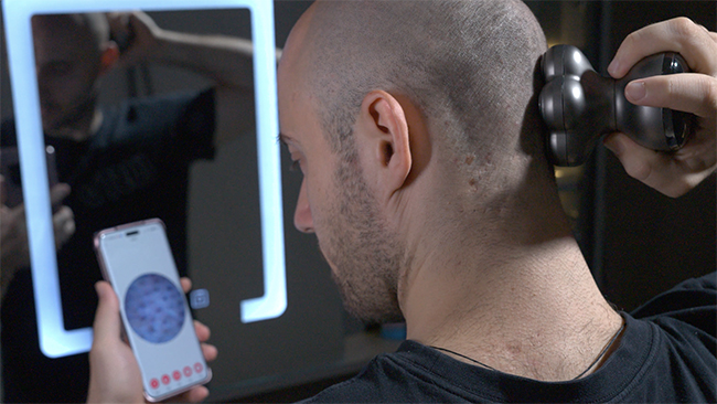 「KonGeeker Q1」は300万画素カメラとLEDライト搭載、スマホアプリで肌を見ながら使える電気シェーバーだ。スマホとはWi-Fi接続が可能で、映像の転送速度は2.4GHzで毎秒20フレームとなっている。