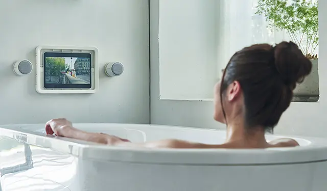 「MAGSPEAKER DUO」は、お風呂の壁や冷蔵庫などにマグネットで貼り付けられる。防水・防じん性能はIP67相当。2つのスピーカーは、好きな位置に設置することで立体感あるステレオサウンドを楽しめる。通信はBluetooth 5.3で接続する。