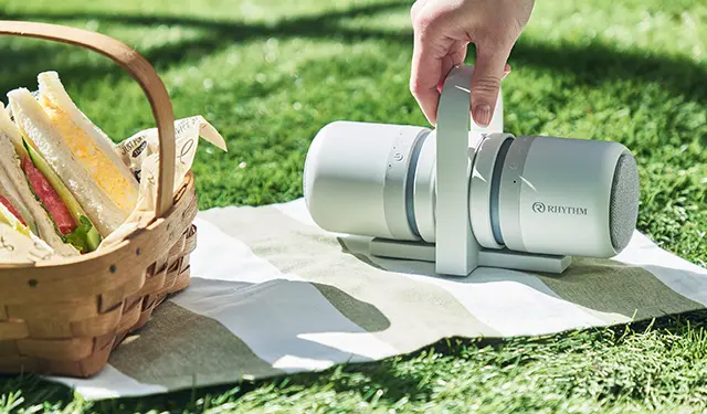 専用の充電スタンドも、マグネットで固定して充電。充電スタンドごと持ち運び、アウトドアでも使える。