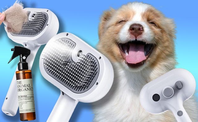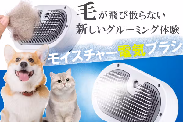 「モイスチャー電気ブラシ」は、微粒子のミストを発生させるペット用電気ブラシ。水の力で静電気を抑制し、グルーミング(ブラッシング)の質をあげるという。