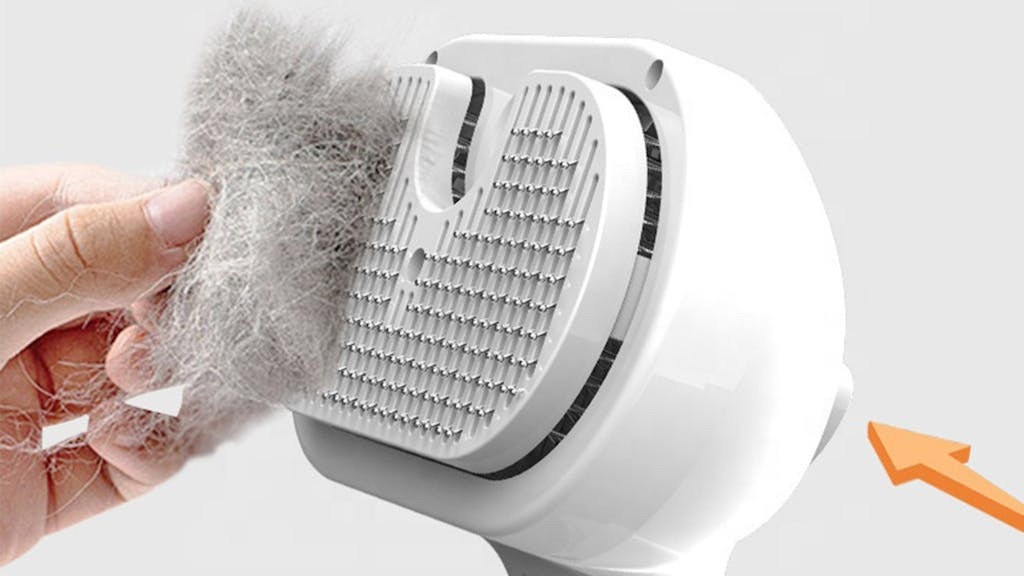 グリップの電源スイッチを押すと、ブラシの中央から霧状の水(ミスト)が噴射される。水分を加えながらグルーミングすることで、被毛の静電気を抑え、しっとりとした仕上がりになるという。