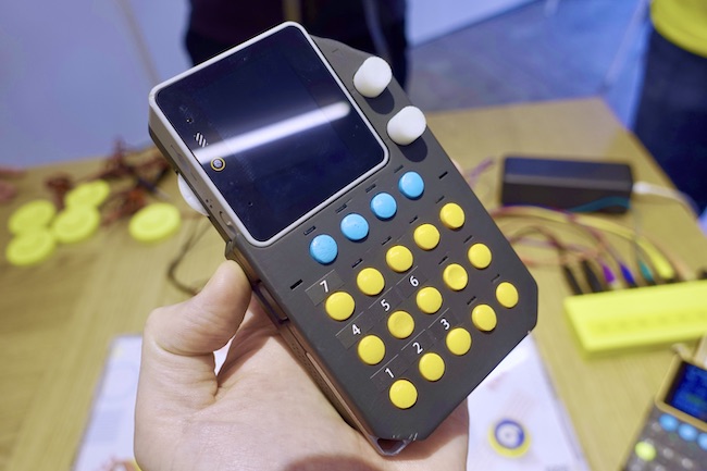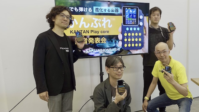 「かんぷれ」は、携帯ゲームみたいなデザインの音楽ガジェット。リズムよくボタンを押すだけで、誰でも簡単に音楽を演奏できる。楽器を弾けない筆者でも、複数の楽器を1人で奏でる体験が楽しめた。
