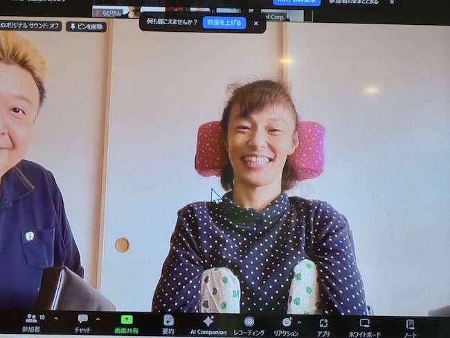 生まれつき脳性麻痺を持つ山下智子さんは、アクセシビリティアドバイザーとして「かんぷれ」の開発に参加。発表会では「ボタン1つで和音が奏でられてとてもうれしかった」「PCとつなげば視線入力で演奏もできる」と、「かんぷれ」のバリアフリーな魅力を語った。