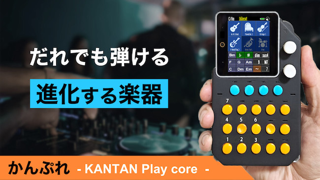 「かんぷれ」は液晶画面と数字が書かれたボタンのあるガジェット。「KANTAN ミュージック」というサービスから、既存の楽譜を数字に変換可能。変換した楽譜に書かれた1~7の数字を押していくだけで、音楽経験のない人でも好きな曲を演奏できる仕組みだ。既存の楽譜を誰でも演奏できるため、コード進行や音楽理論が自然と身についていくという。