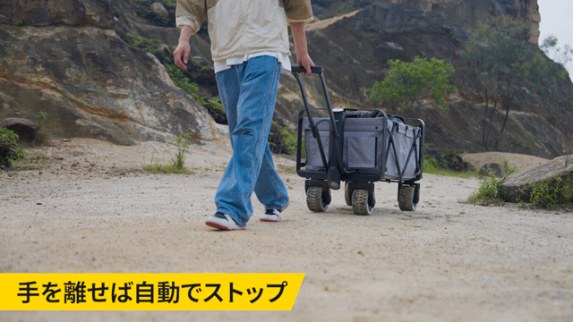 また、勾配15°以下であれば、登り坂はパワーアシスト、下り坂はスピード調整してくれる。手を離すと自動でストップする緊急停止機能付き。