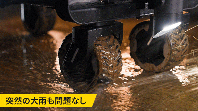 バッテリー・モーターを含めワゴン全体がはっ水加工されており、丸洗いできる。電子部品は30分間の浸水試験、ワゴン全体で72時間の塩水噴霧テストをクリア済みという。動作温度は−10〜45°C。