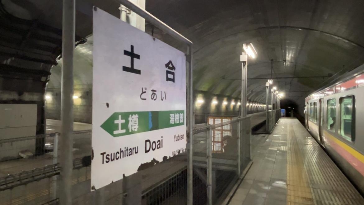 水上駅から所要およそ10分、車窓がやや明るくなると、新清水トンネルの中の土合駅へと到着する。駅は清水トンネルが開通した後の、1936年(昭和11年)に開業。
