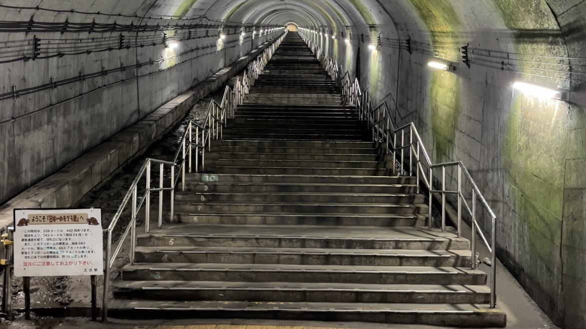 土合駅舎まで続く階段。頂上にかすかに明かりが