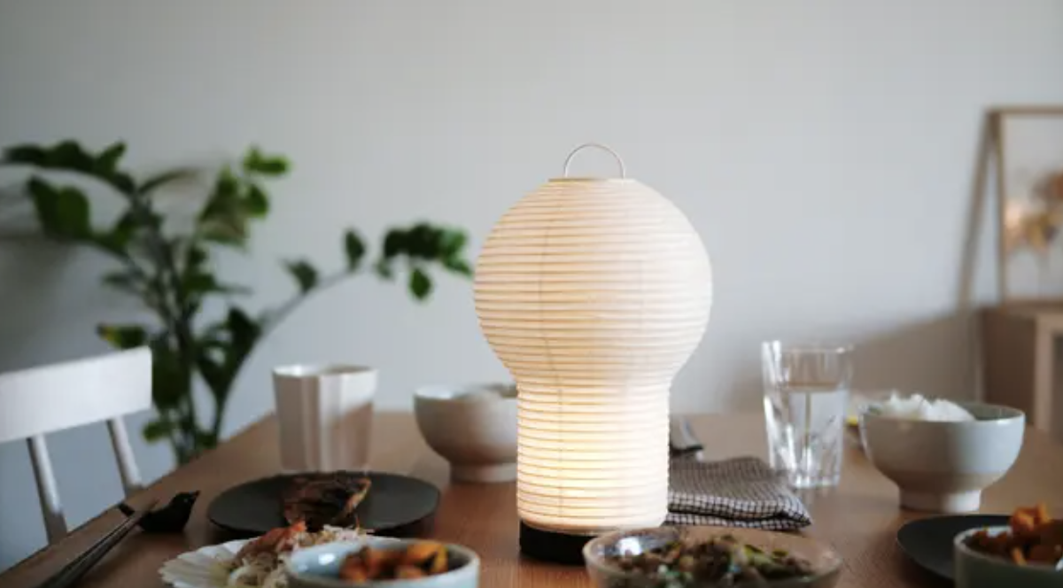 最大の特徴は、和紙を通して広がる柔らかな暖色の光。温かみのある光が、部屋を優しく照らしてくれる。電源ボタンに長く触れると、明るさの調整も可能。