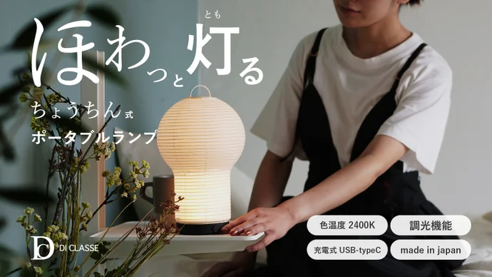 「bobori portable lamp」は、和紙製のシェードをLEDにかぶせるランプ。